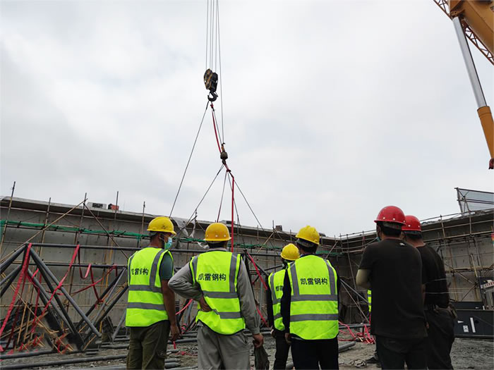 6.为确保.侯马加油站球形网架安装顺利,应有详细的侯马施工组织设计。网架安装必须保证结构的稳定性和不产生的附加变形。